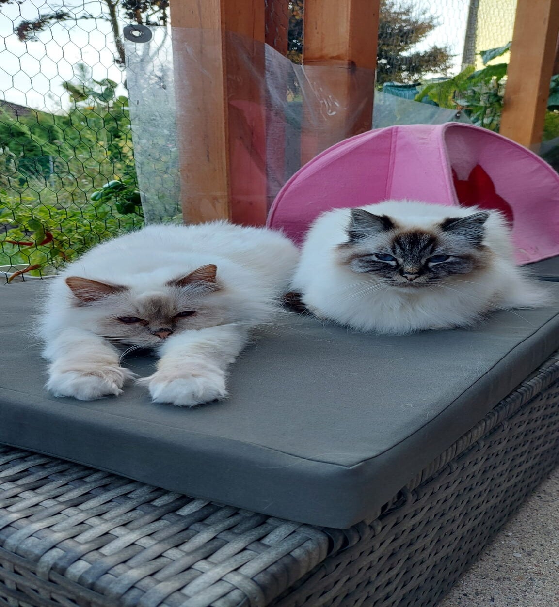 Aktuell leben bei uns 3 Heilige Birmas. Unsere Ladies sind schon etwas älter - 2x 13 Jahre und 1x 12 Jahre alt. Sie lieben es die meiste Zeit zu schlafen. Bis auf ihre 5 Minuten am Tag sind sie sehr ruhige Mitbewohner.